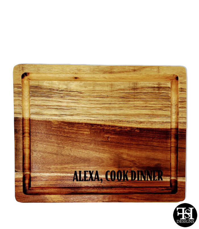 "Alexa, Cook Dinner" laser engraved cutting board.
