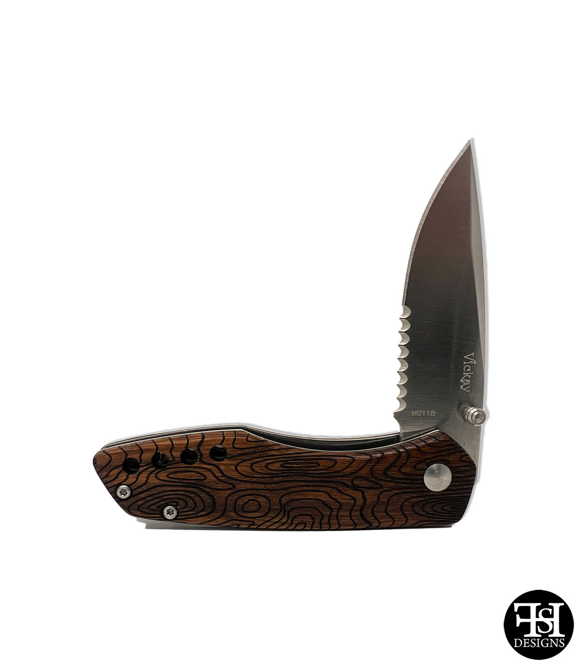 Topographic laser engraved 3.5" Zebra wood folding pocket knife.